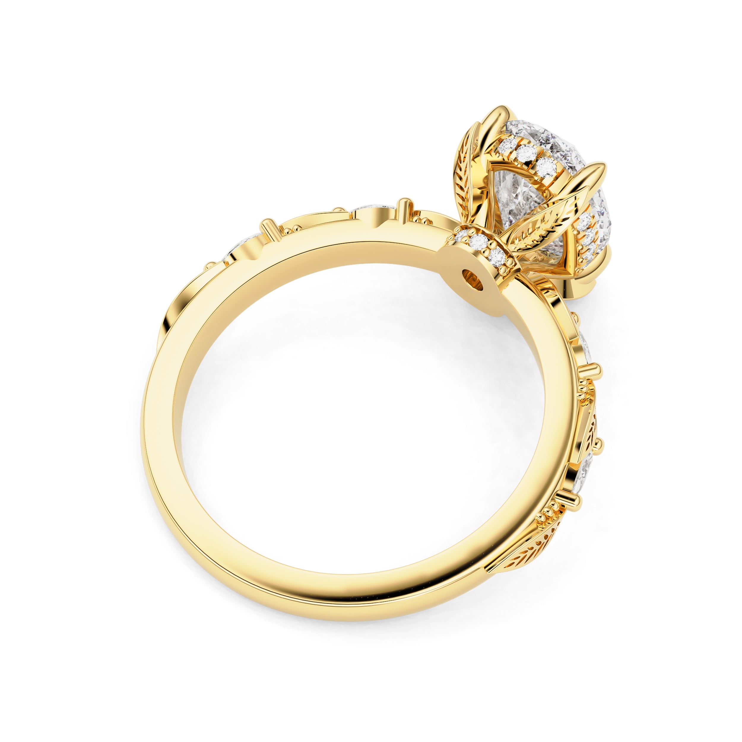 Brooke Oval Cut Leaf Hidden Halo Engagement Ring, Moissanite/Lab Grown Diamond
