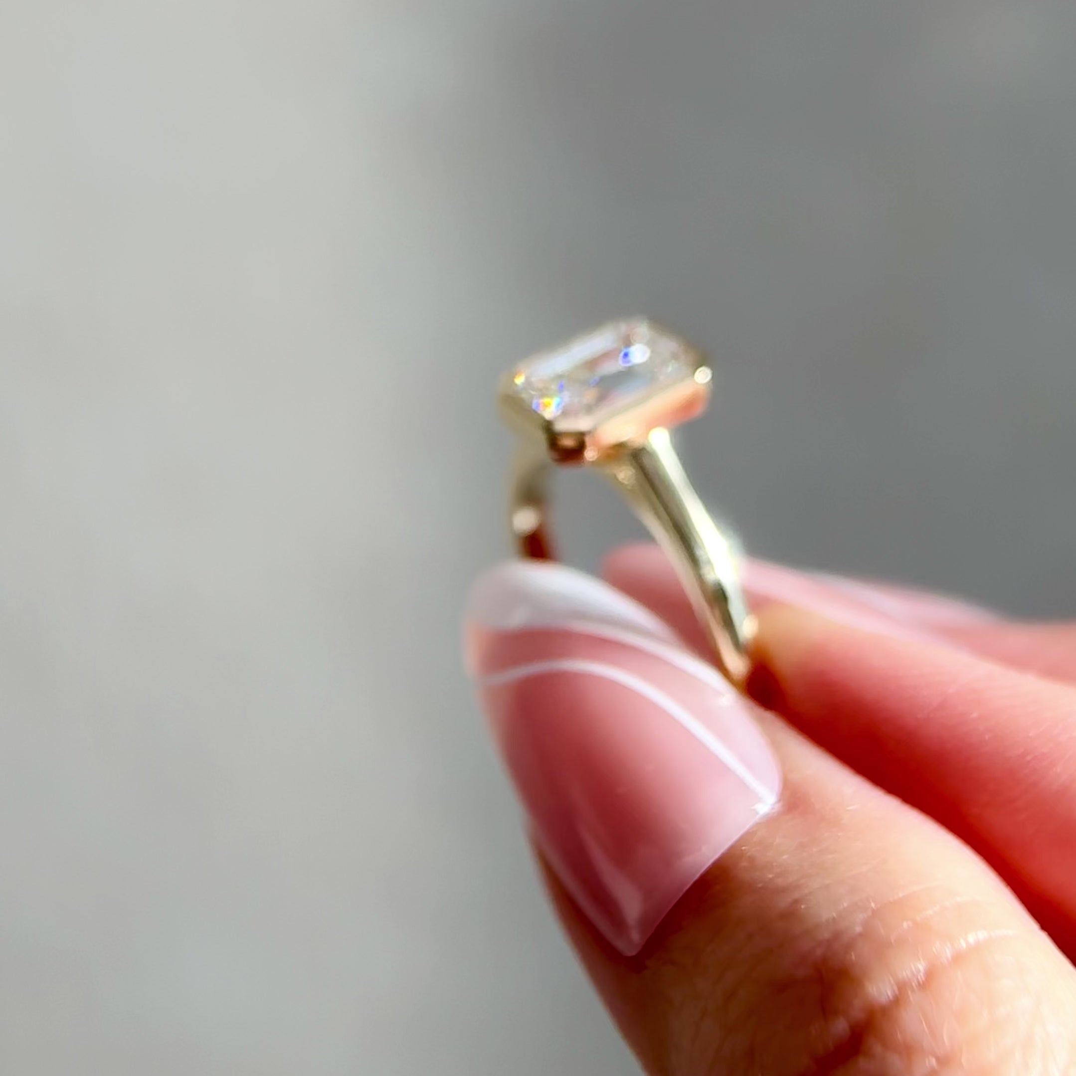 Carmen Emerald Full Bezel Engagement Ring, Moissanite/Lab Diamond