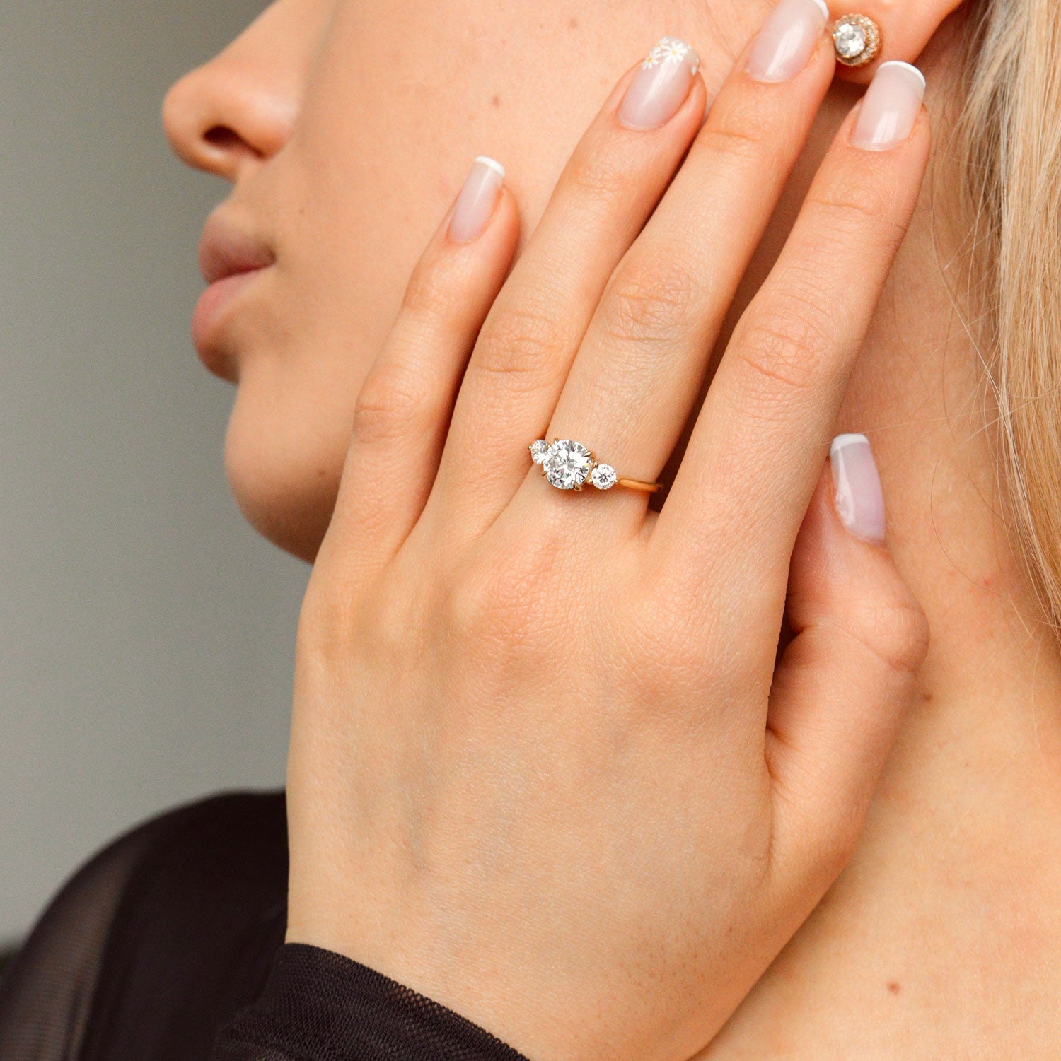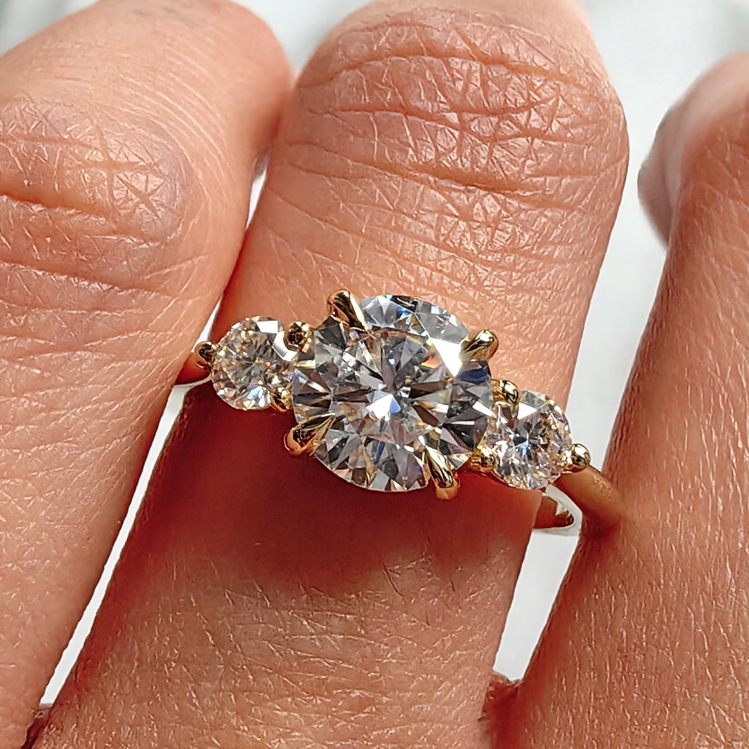 Sofia Round Three Stone Engagement Ring, Moissanite/Lab Grown Diamond