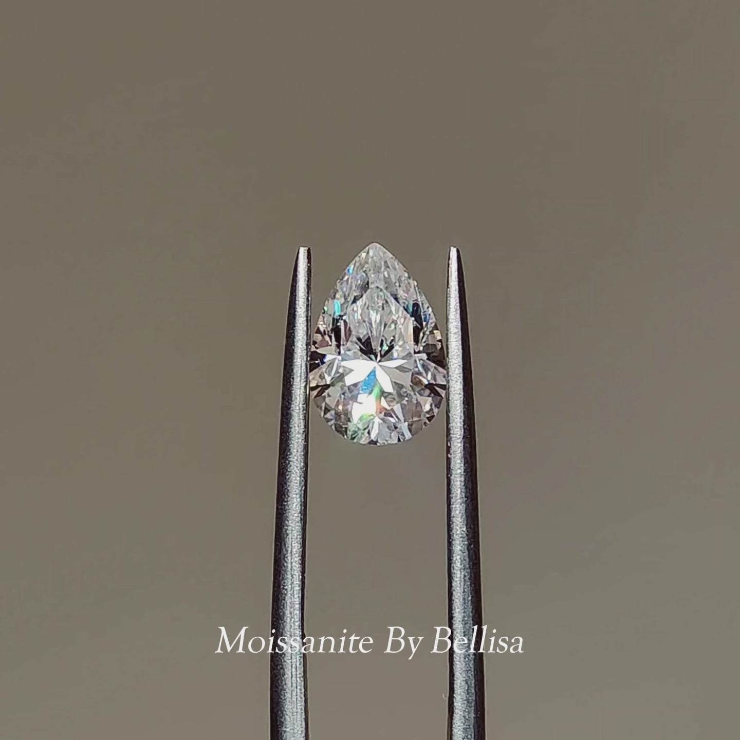 Moissanite By Bellisa, Pear Cut, 10x7mm, ~2ct, VVS Clarity, D Color.