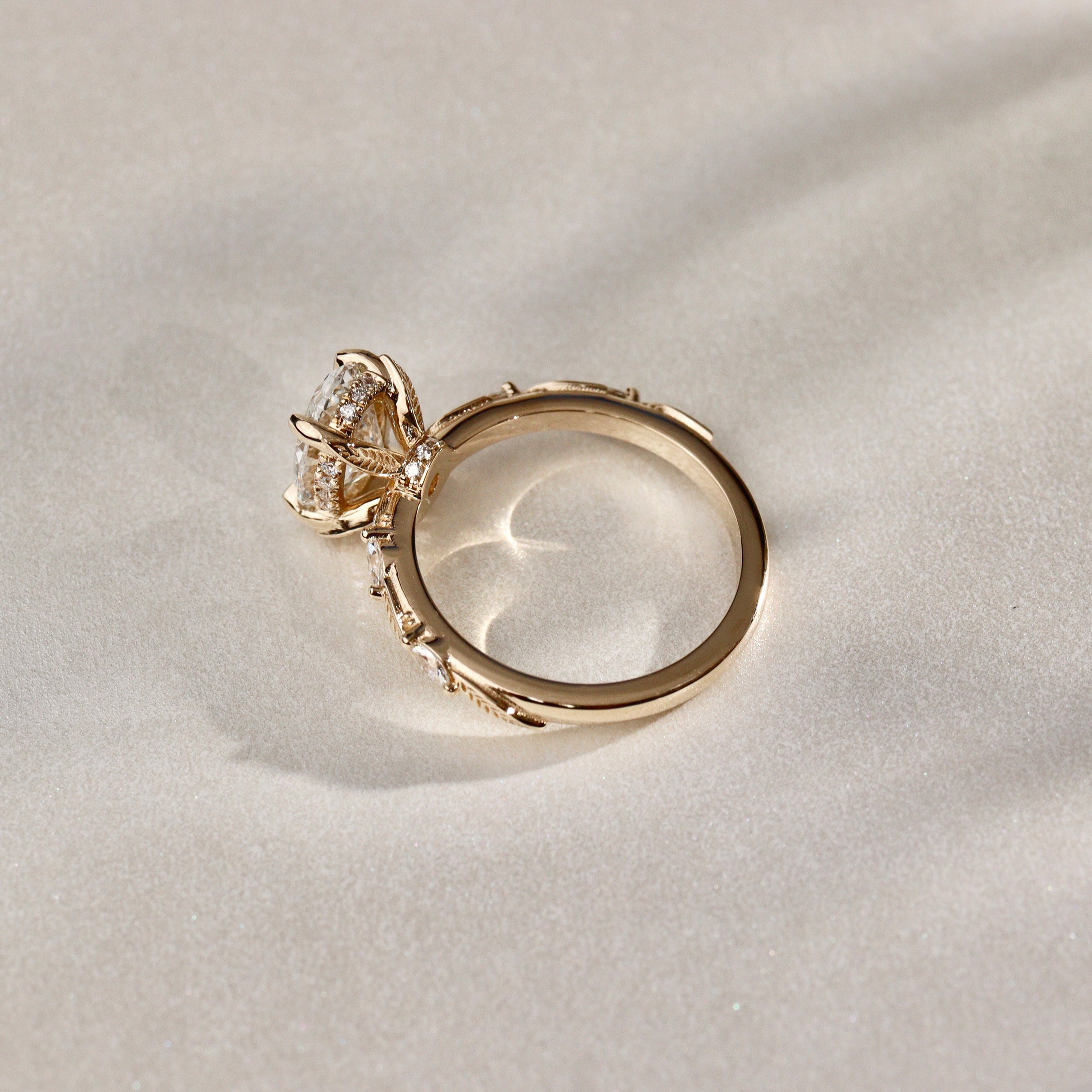 Stone Shape : Brooke Oval Cut Leaf Hidden Halo Engagement Ring, Moissanite/Lab Grown Diamond