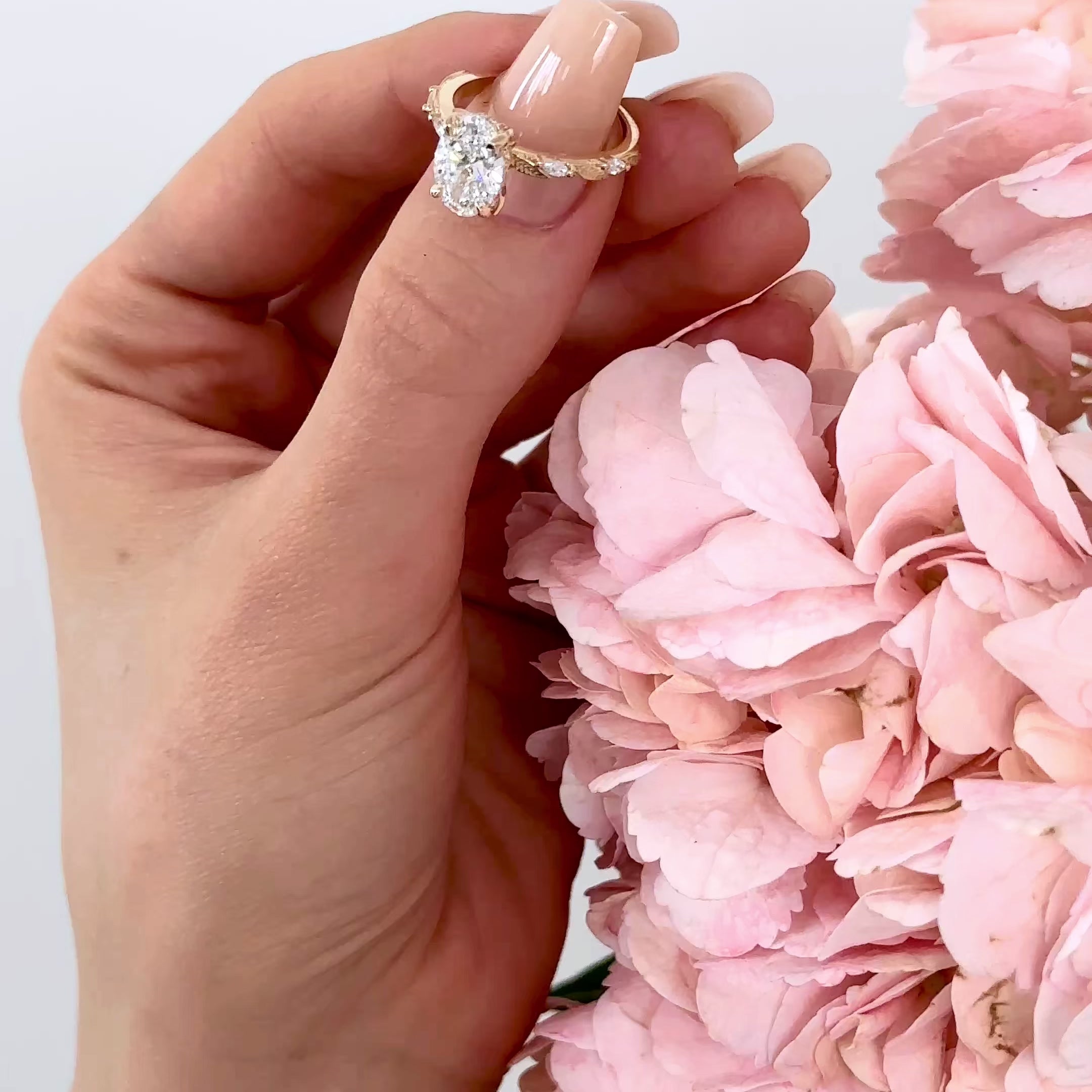 Brooke Oval Cut Leaf Hidden Halo Engagement Ring, Moissanite/Lab Grown Diamond