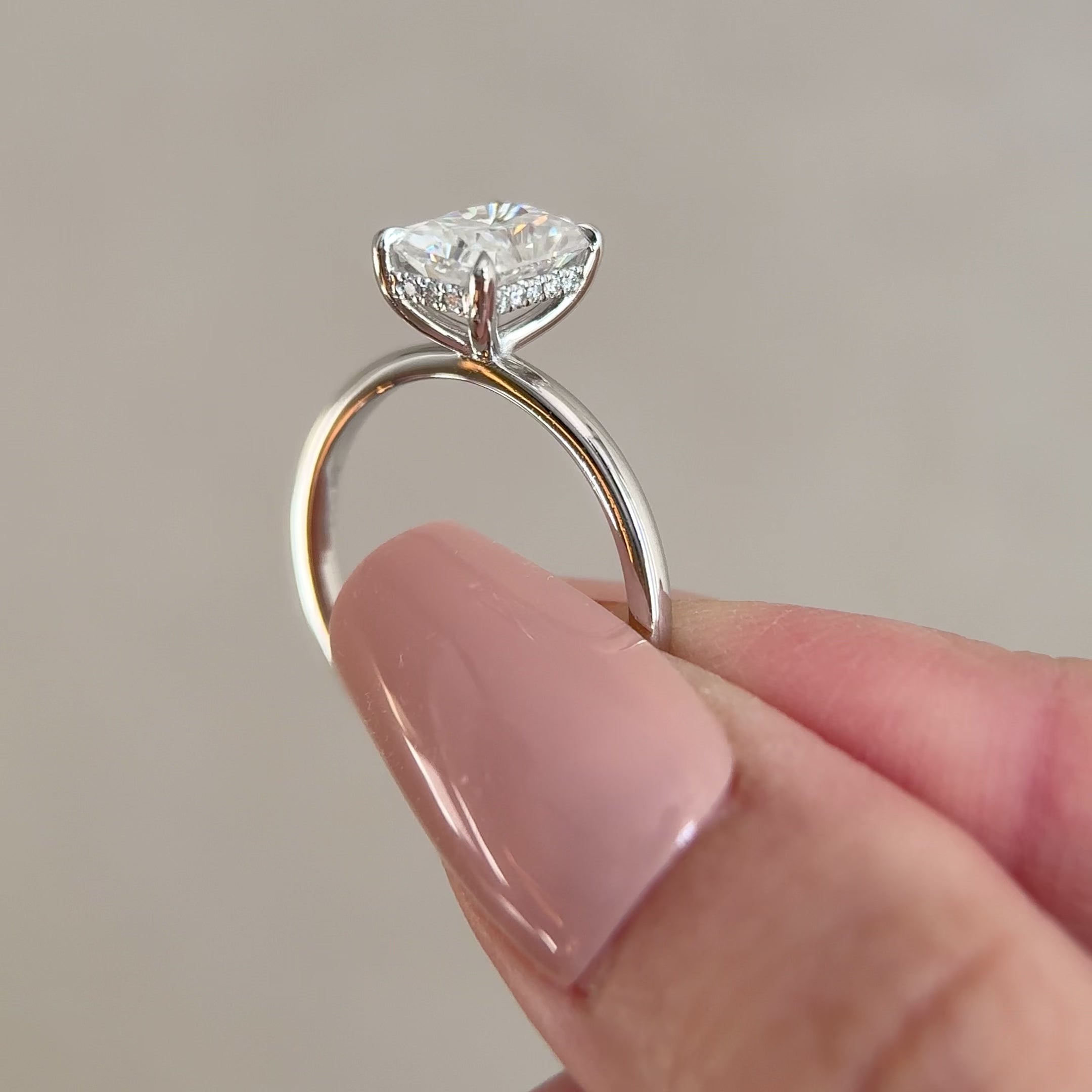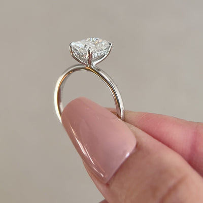 Stone Shape : Chloe Radiant Cut Hidden Halo Solitaire Engagement Ring, High Set