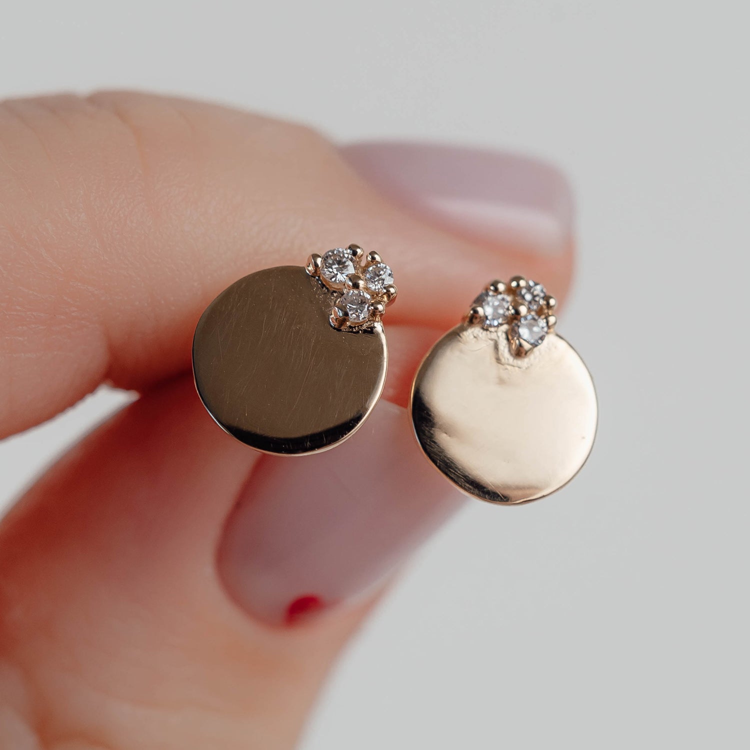 The circle of life represents infinity and eternity, it is a symbol of forever. Our Circle of Life Earring takes the infinity and eternity as everlasting self-care and self-love. This earring features a round disc with three ethically sourced natural diamond settings on top. Perfect to wear solo or stack with other studs to make a statement.