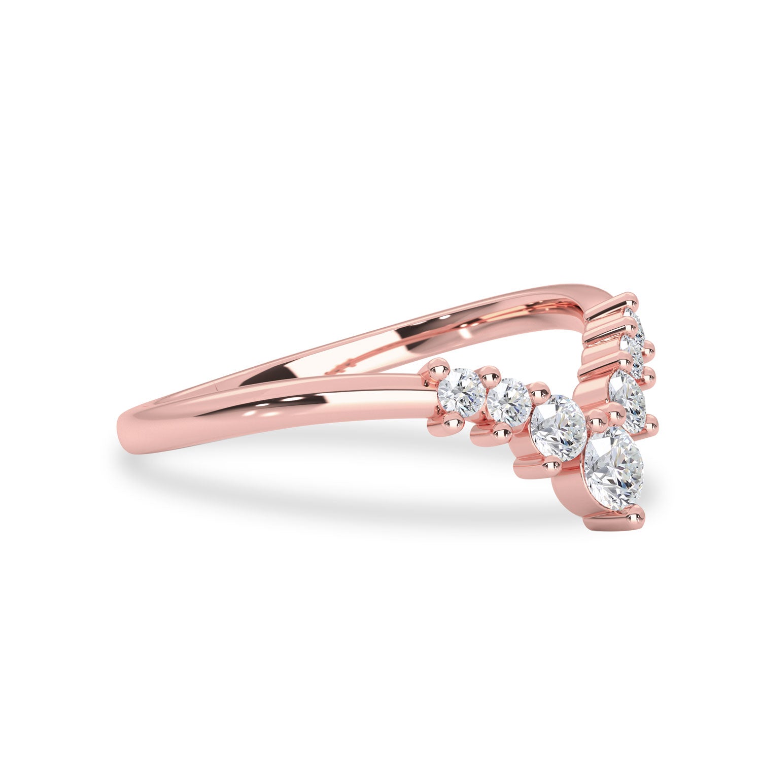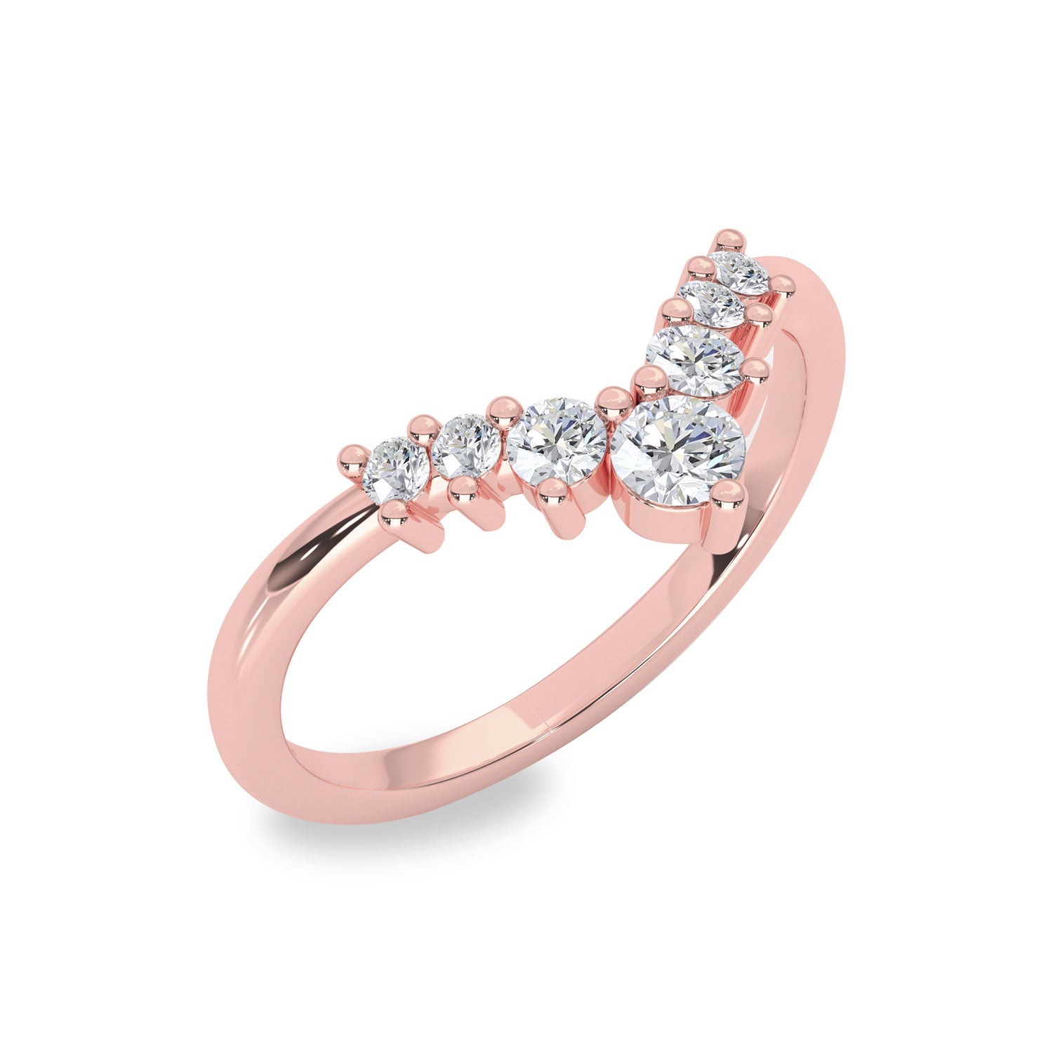 An array of pavé set gems adorns the curved band, creating a glistening effect reminiscent of delicate dewdrops. This design culminates in a focal point of elegance and charm. Tailored to harmonize with your Bellisa engagement ring set, this ring is equally stunning when worn on its own. Its versatility allows for pairing with any low-set design, offering you a myriad of style options to suit your personal taste and preferences.
