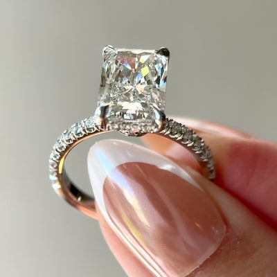 Lily Radiant Double Hidden Halo Engagement Ring, Moissanite/Lab Grown Diamond