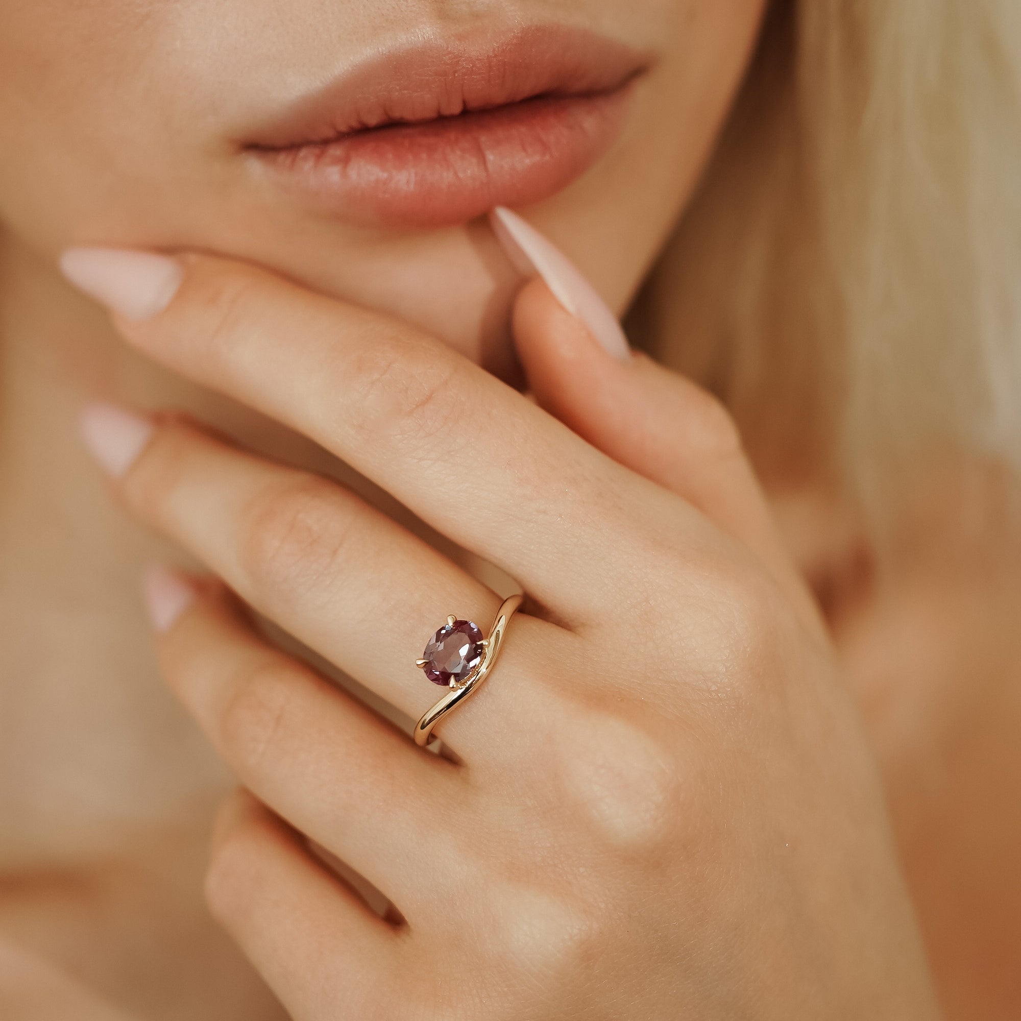 Orla Oval Lab Alexandrite Curved Band Solitaire Engagement Ring