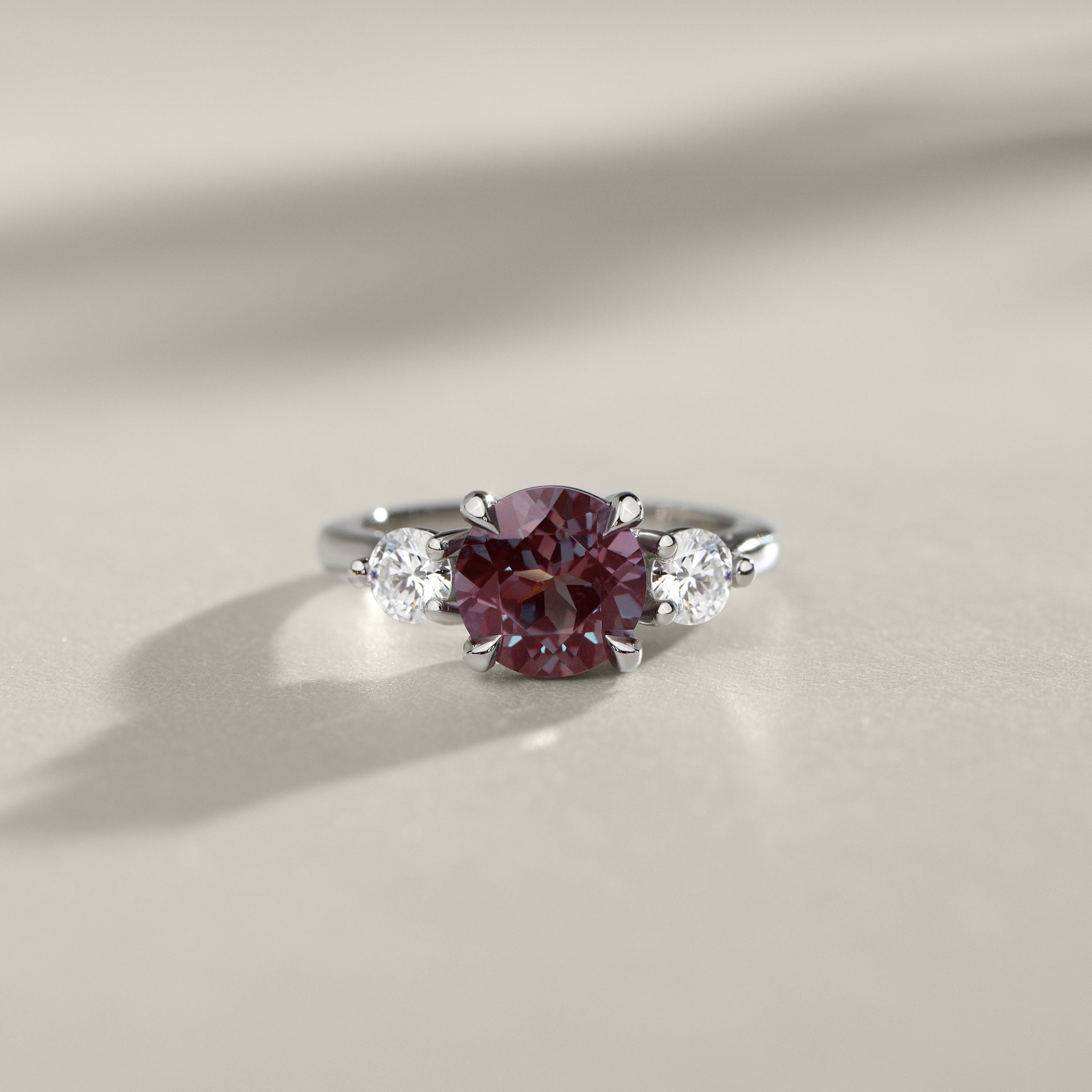 Sofia Round Lab Alexandrite Three Stone Engagement Ring