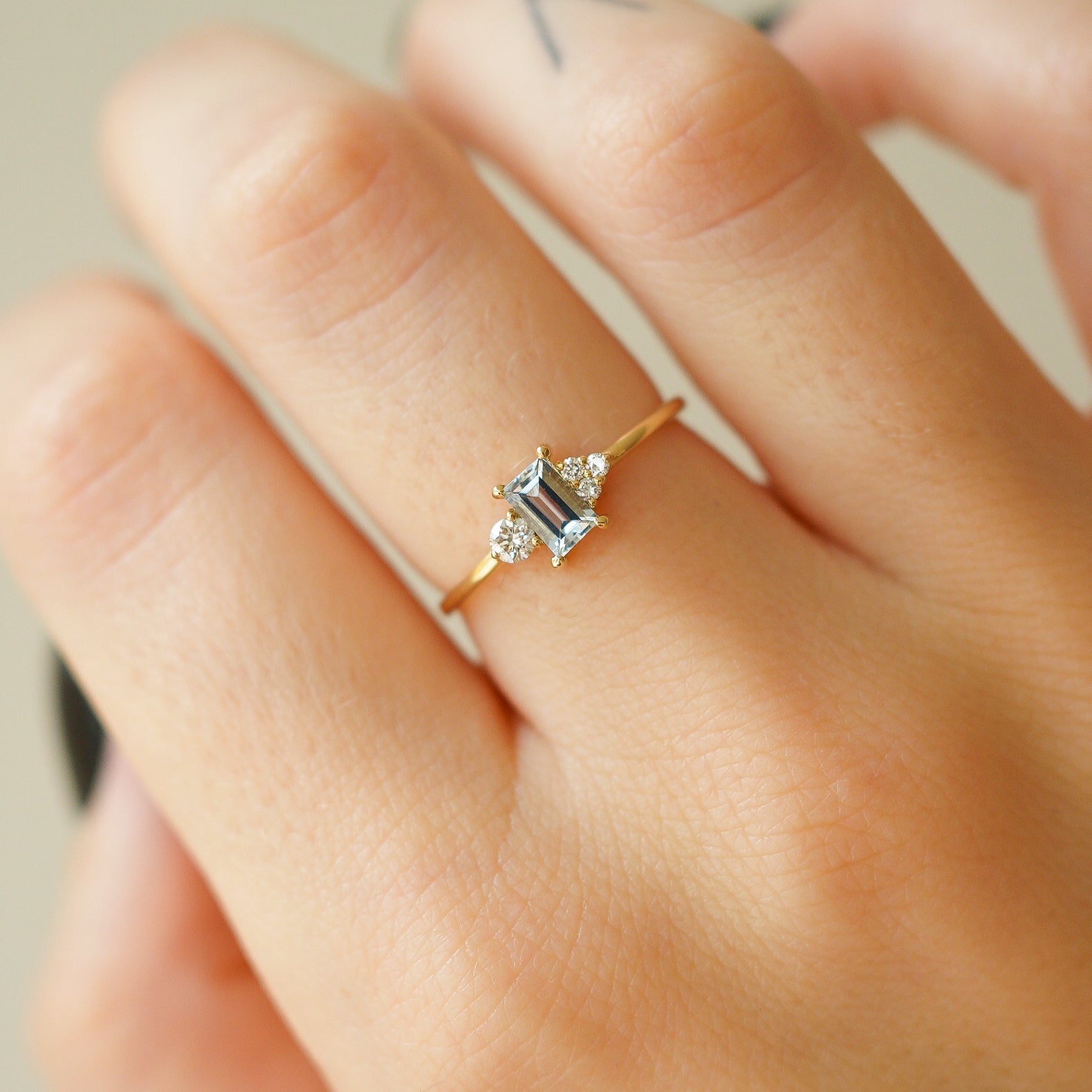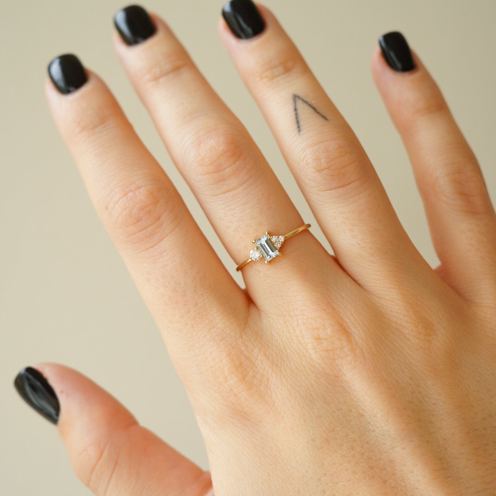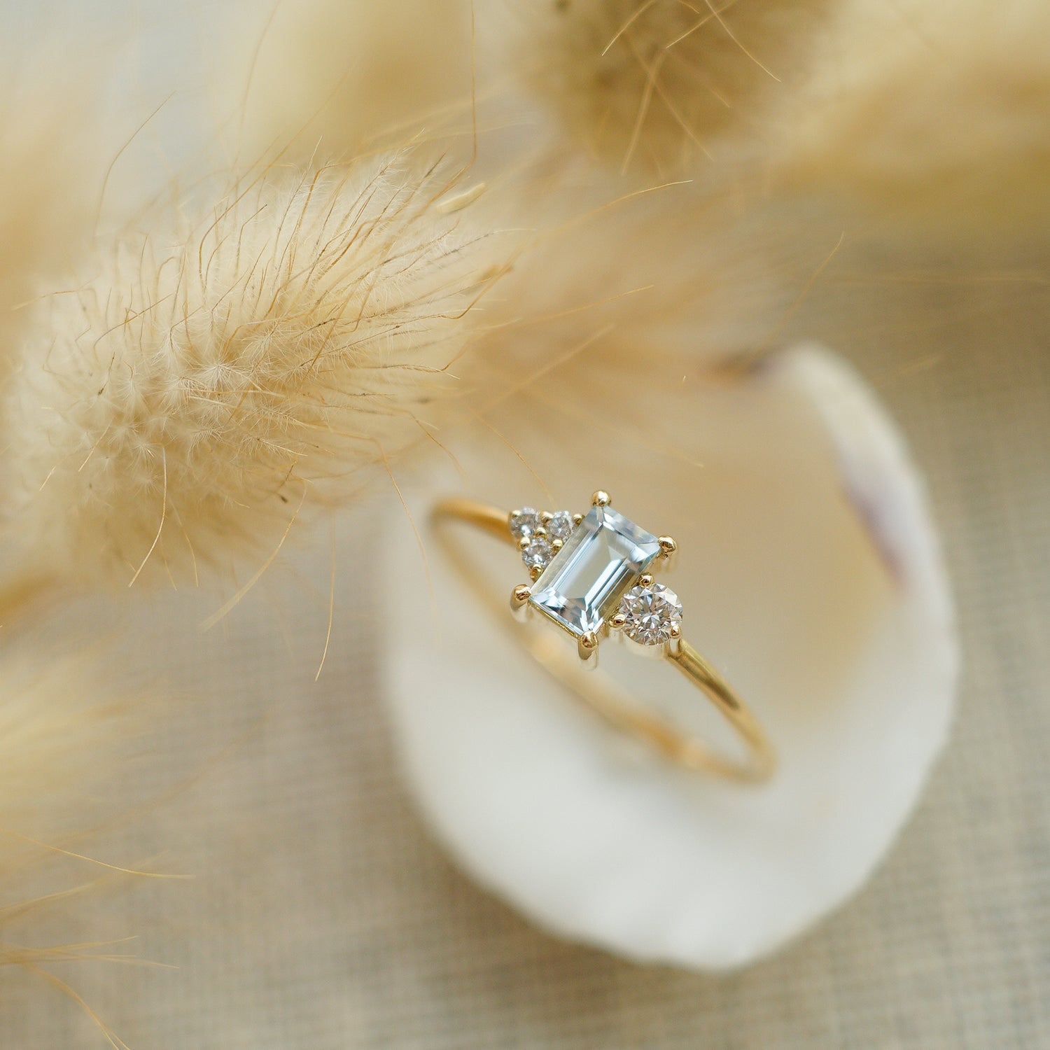 - Made in 14k solid gold, set with ethically sourced natural aquamarine and diamond.