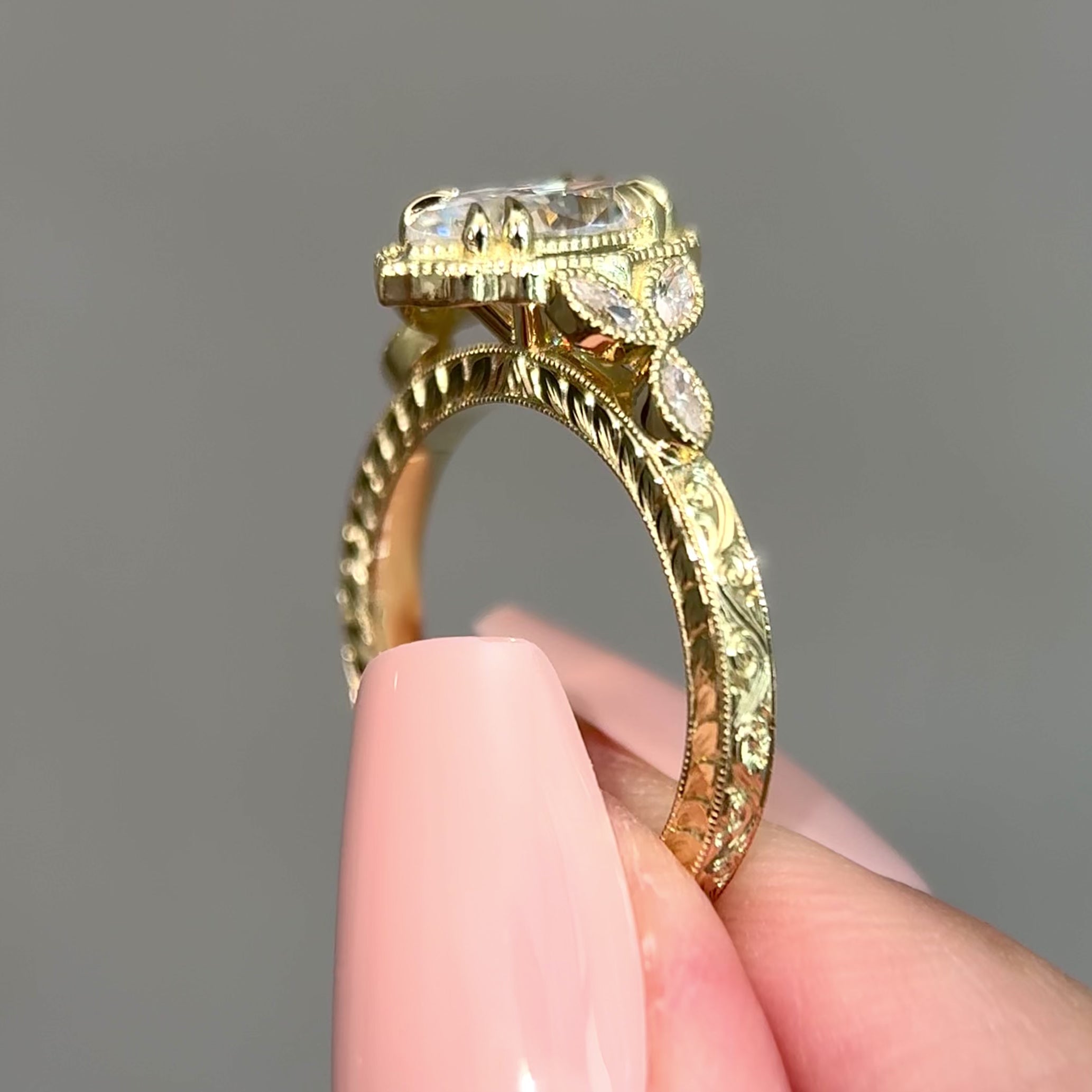- Design: Custom Vintage Milgrain Marquise Engagement Ring, Hand Engraving