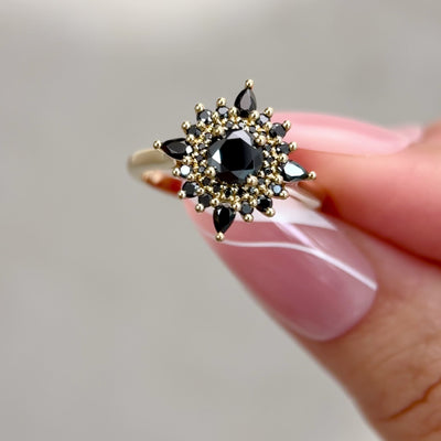 Bespoke - Customize Black Moissanite Round Elizabeth Double Halo Engagement Ring