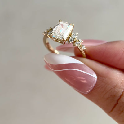 Stone Shape : Elena Emerald Cut Cluster Engagement Ring, Moissanite/Lab Grown Diamond