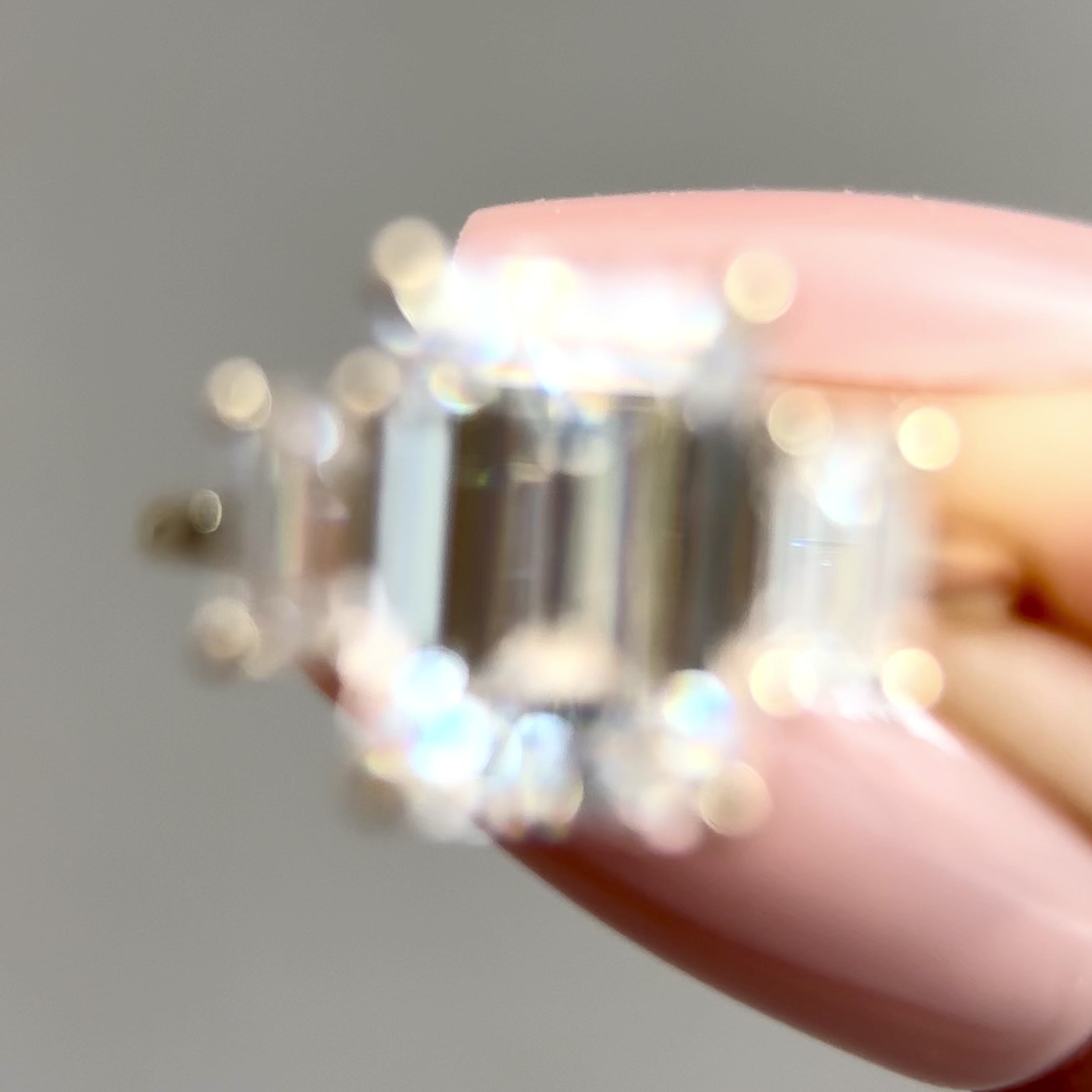 - Moissanite By Bellisa, Emerald Cut, VVS Clarity, D Color.