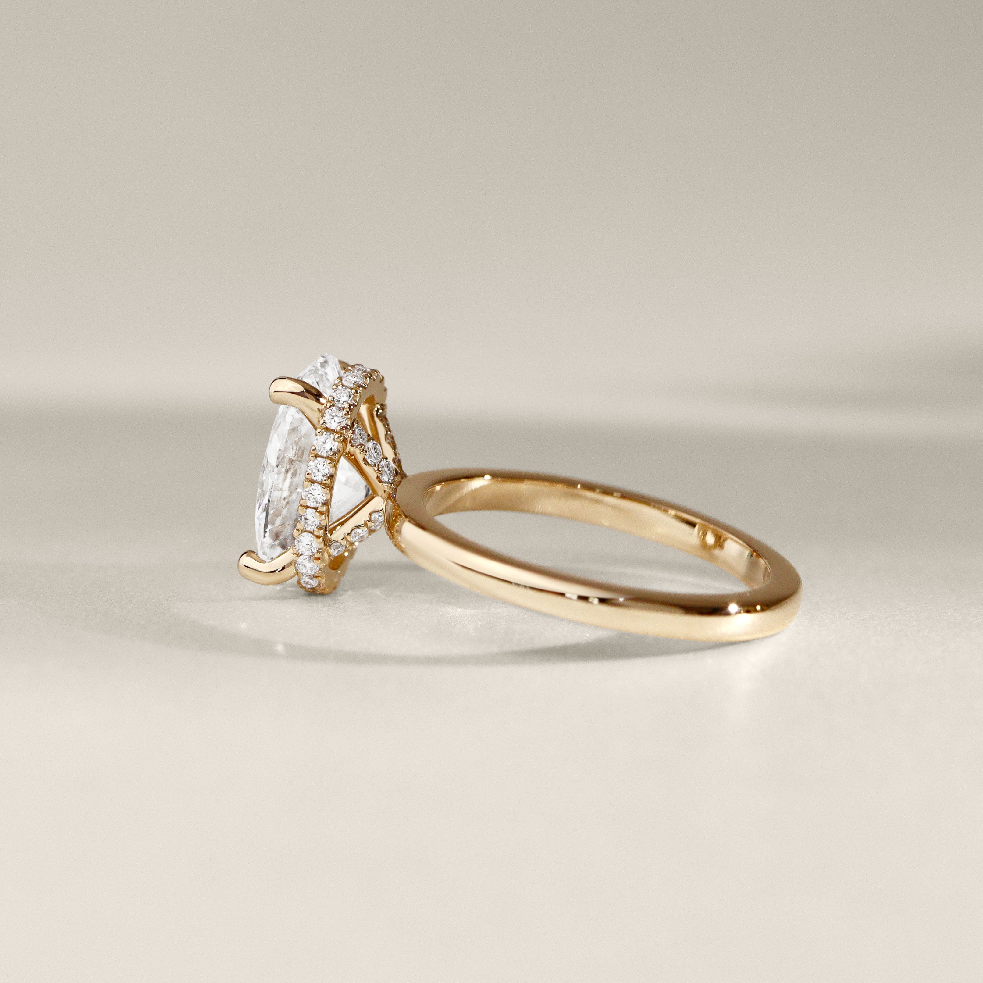Oval Amelia Hidden Halo Engagement Ring, Pave Crown