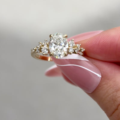 Oval Elena Cluster Engagement Ring, Moissanite/Lab Grown Diamond