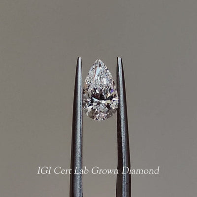 - Lab-Grown Diamond, Pear Brilliant Cut, VS+ Clarity, E-F Color, IGI Certified.